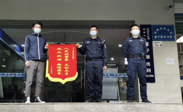2月26日,黄先生又专程赶到盛平派出所送上锦旗再次表达感谢。他说多亏民警认真负责,没有把附近居民投诉的“噪音扰民”这样的日常警情当做“小事”对待,而是尽职尽责挨家挨户敲门查访,这才挽回了他的性命。