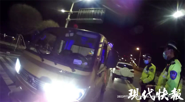 近日,南京市公安局六合分局瓜埠派出所交通巡防中队民警开展夜查整治行动时,一阵阵“倒车,请注意”的声音引起了民警的注意。原来一辆三轮载货摩托车在临近执勤点时突然倒车调头,民警拦住后,查出驾驶员是酒驾。
