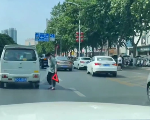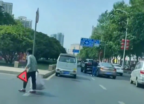 河南一大妈顺走追尾车主的三角警示牌?律师:引发事故要追责!