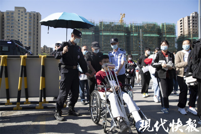 盐城两考生骨折坐轮椅赴考,民警暖心“搭把手”