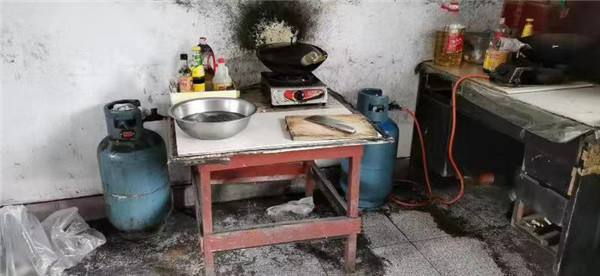 原来,该处农宅出租给了5户人家,虽然5户人家均是老乡亲戚,但由于上下班时间各不相同,为了各自方便,5户人家均各自购买了液化气罐及灶头。