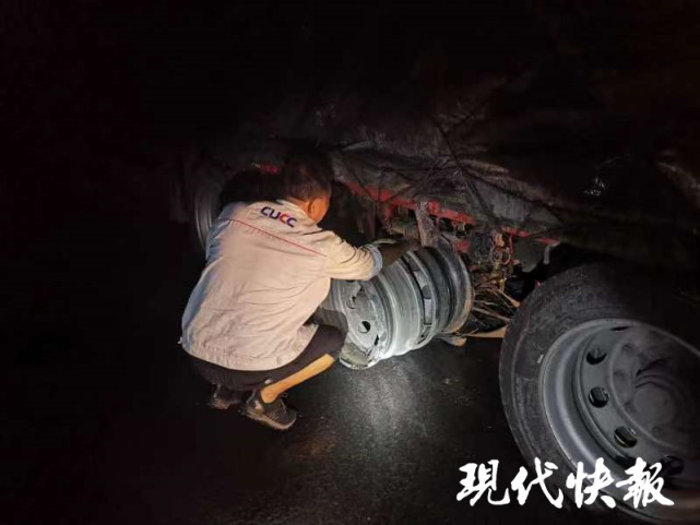 经了解,该货车是从山东运送板材到浙江,这一车货物价值几十万元。据货车司机介绍,在进入京沪高速高邮某段施工路段的时候,他也听到了巨大的响声,但并不知道是自己的车胎爆了,加上一路风雨注意力都在开车上。回想起来,货车司机感到十分后怕。