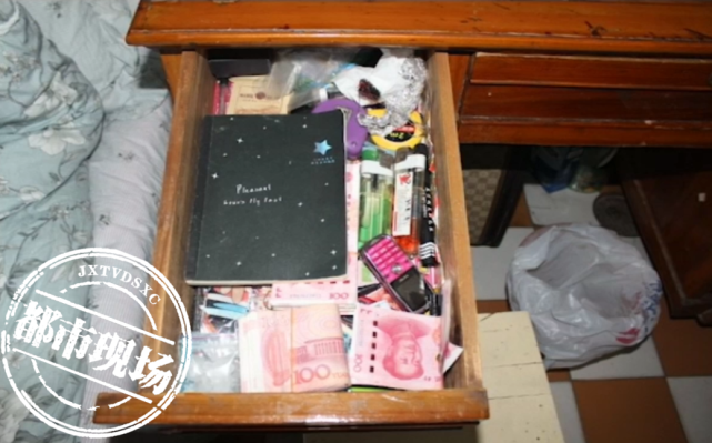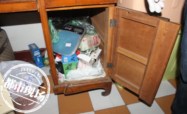 九江市德安县公安局禁毒大队 侦查员2:基本上以一万块钱左右为一沓,大约三四十沓,她放得很随意的,她随意到什么程度,就拿垃圾袋把袋口一封紧,随便系两下。她外面门也没锁,柜子也没有锁的,很随意的。