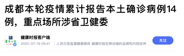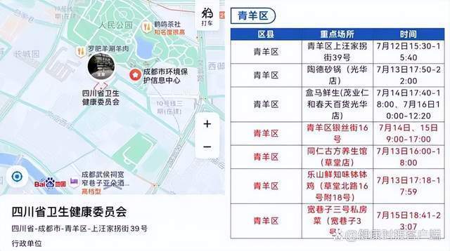 另据健康时报记者查询发现,健康成都官微7月18日发布的《成都市“0715”本土疫情病例活动轨迹风险点位一览表》中,重点场所还涉及四川省卫生健康委员会。