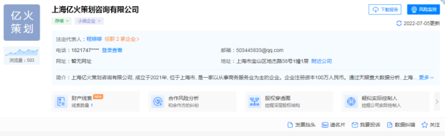 天眼查APP显示,上海亿火策划咨询有限公司因帮助其他经营者进行虚假或者引人误解的商业宣传,被静安区市场监督管理局罚款20万元。
