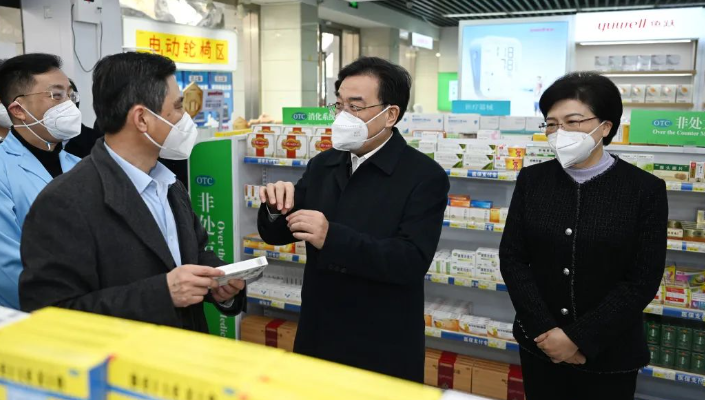 就新阶段下的疫情防控工作,信长星来到南京医药百信药房中山东路店,实地察看药品销售、保供情况。他指出,医疗物资和药品保供是群众最关心的事,要全力拓展供应渠道,保障企业稳产扩产,加强城乡统筹,把宝贵的医疗资源用到最需要的地方,更好满足群众需求。