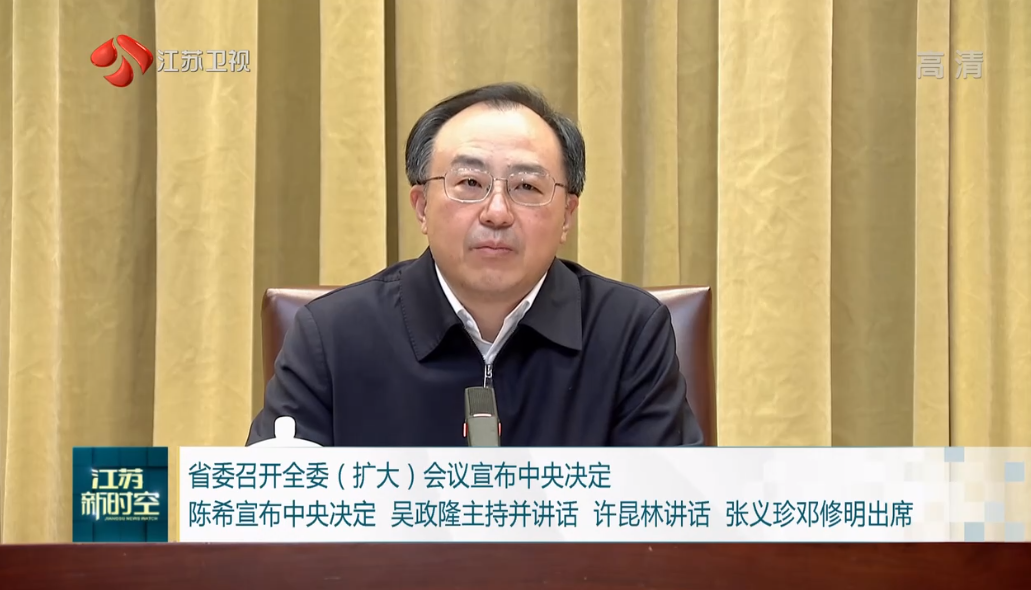 2022年12月28日,江苏省委召开全委(扩大)会议。中央组织部部长陈希出席会议并宣布中央决定:吴政隆不再担任江苏省委书记、常委、委员职务,另有任用。