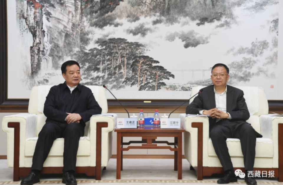 3月14日下午,西藏自治区党委书记王君正与中国铁建股份有限公司党委书记、董事长汪建平在北京座谈。