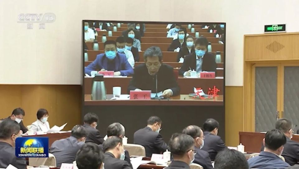 画面显示,人社部部长王晓萍、教育部部长怀进鹏、天津市市长张工、陕西省省长赵刚等作了发言。