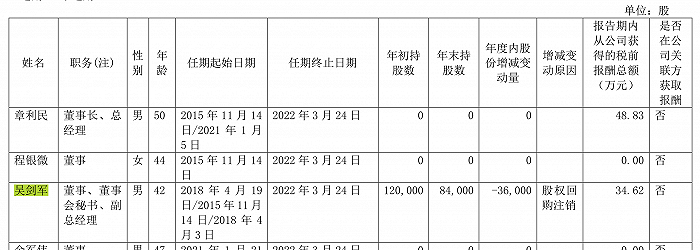 来源:同花顺资料显示,韦炜1981年生,2006年5月毕业于印第安纳大学法学专业,取得硕士学位。2004年7月至2005年7月,曾任司法部法律援助中心(柳州法援)律师。2007年7月至2009年7月,曾任北京市君合(深圳)律师事务所律师。2011年10月至2013年7月,曾任深圳迈瑞生物医疗电子股份有限公司法务。2013年7月至2020年3月,曾任深圳华大基因科技有限公司法务负责人。需要指出的是,上述薪酬都未涉及各位高管的持股收益。收益与风险同在有高收益,同时也会伴随着高风险。随着注册制时代来临,随着监管趋严,高管的工作繁杂且需规范,一旦踏过红线,处罚力度惊人。5月13日*ST中昌(600242.SH)披露的《行政处罚事先告知书》显示,公司未按规定披露关联交易、未及时披露重大诉讼及进展情况,其中,公司时任董事、副总经理和财务总监薛玮佳,被给予警告,并处以了50万元的罚款。5月11日的ST起步(603557.SH)公告显示,因公司2018年、2019年年度报告及2020年半年度报告存在虚假记载、重大遗漏,公司公开发行文件编造重大虚假内容,最终上市公司被责令改正,给予警告,并处以5700万元罚款;时任董事长章利民被给予警告,并处以500万元罚款;时任财务总监陈章旺被给予警告,并处以300万元罚款;时任总经理周建永被给予警告,并处以1000万元罚款;时任董事会秘书、董事、副总经理吴剑军被给予警告,并处以200万元罚款。另外,监管层还对周建永采取10年市场禁入措施,对章利民、陈章旺采取5年证券市场禁入措施。进一步看ST起步的公告,周建永是组织、指使造假者,章利民是直接负责的主管人员,陈章旺是直接参与造假,而时任董秘吴剑军“负责组织和协调公司信息披露事务,在上述发行文件中签字确认,是其他责任人员。” 即便如此,200万的罚款对其也不是小数目。根据2020年年报,吴剑军的年薪为34.62万元。