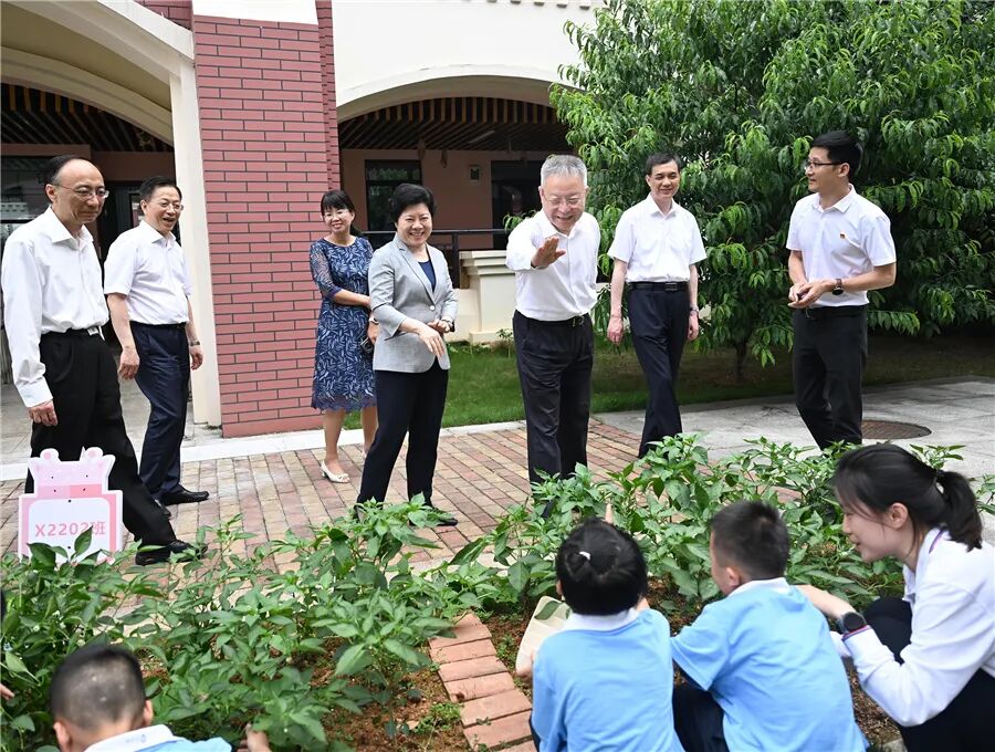 开福区第一小学内洋溢着浓浓的节日气氛,“六一”游园活动正在进行。沈晓明来到学校,在小讲解员的带领下观看游园活动,并参加了“听党话,跟党走,我与祖国共成长”庆“六一”主题队会。他说,少年儿童是祖国的花朵、民族的希望、国家的未来,要深入学习贯彻习近平总书记关于少年儿童工作的重要论述精神,进一步增强做好新时代少儿工作的责任感和使命感,全面落实立德树人根本任务,发挥学校办学特色,不断提升教学质量,推动义务教育优质均衡发展,培养更多栋梁之材。