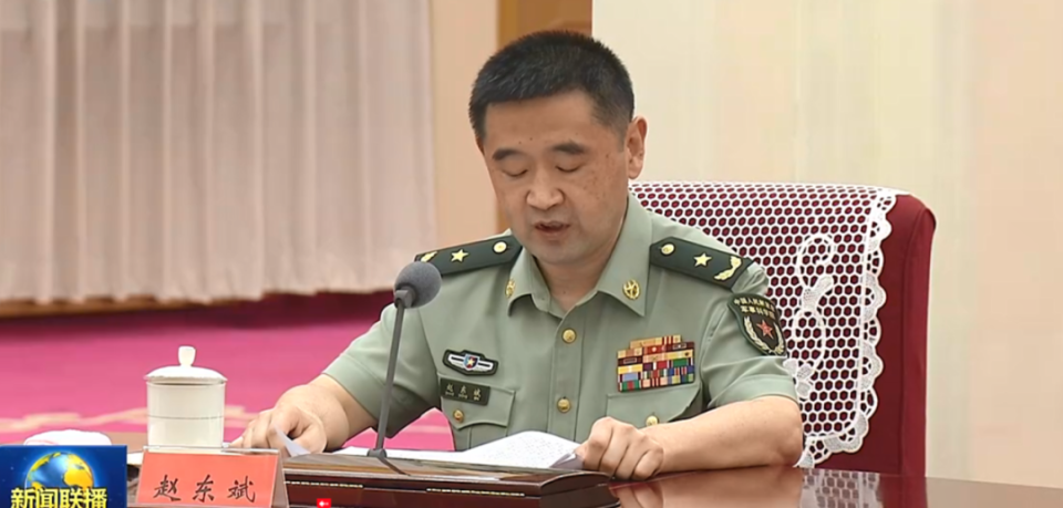 据《新闻联播》画面显示,在这次中央政治局集体学习现场,作讲解的是军事科学院军事法制研究院院长赵东斌。