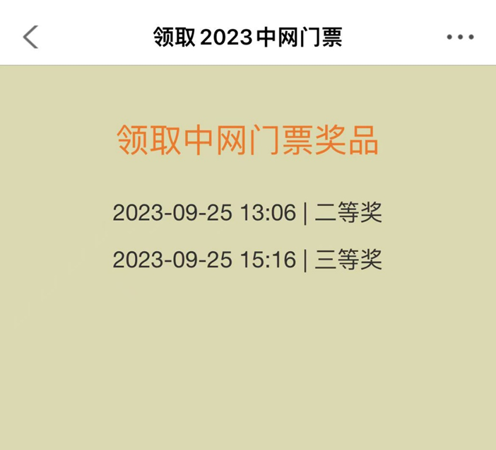 三等奖:2023中国网球公开赛正选赛门票