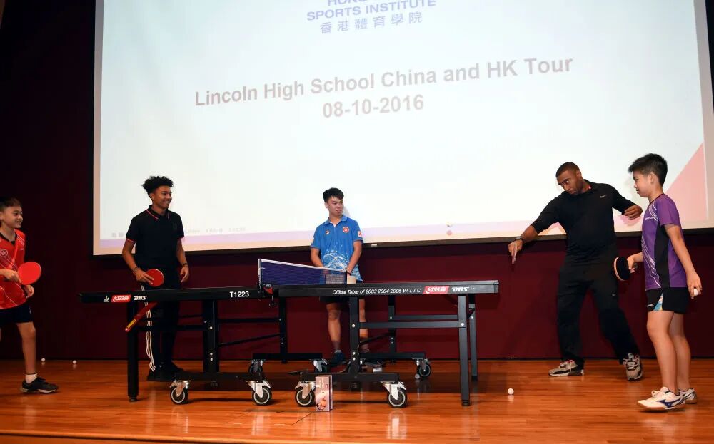 2016年10月8日,香港乒乓球运动员与林肯中学学生进行交流比赛