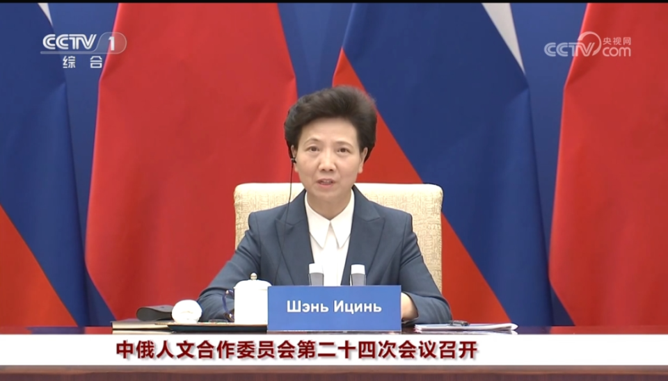 12月13日,中俄人文合作委员会第二十四次会议通过视频连线方式召开,国务委员谌贻琴与俄罗斯副总理戈利科娃共同出席。