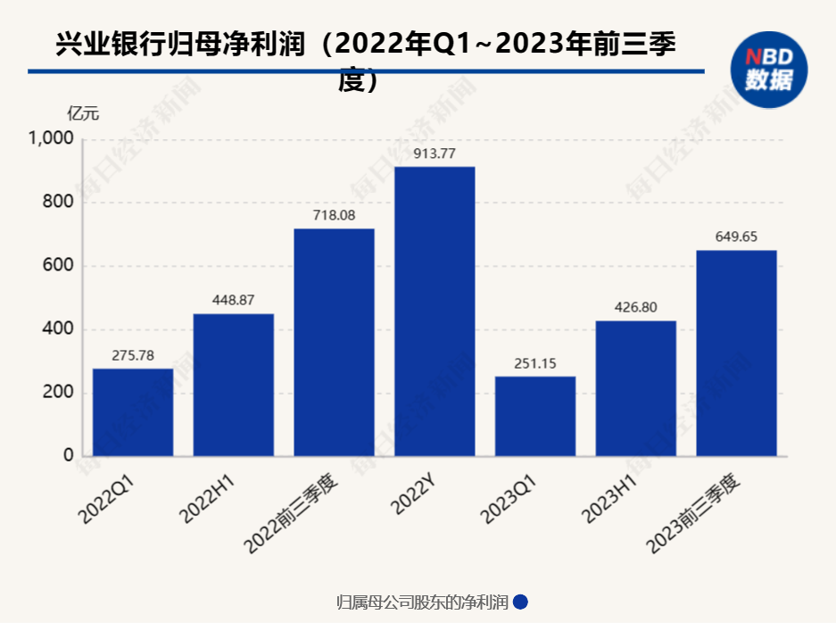 兴业银行2023年第三季度报告显示,前三季度,该行实现营业收入1612.96亿元,同比减少5.59%,实现归母净利润649.65亿元,同比减少9.53%。截至2023年9月末,兴业银行总资产为99232.94亿元,较上年末增长7.09%。集团口径下核心一级资本充足率9.47%,一级资本充足率10.64%,资本充足率13.78%。
