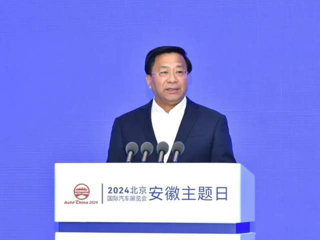 4月28日上午,2024北京国际汽车展览会安徽主题日活动在中国国际展览中心举办。安徽省委书记韩俊出席并致辞,省长王清宪主持活动。