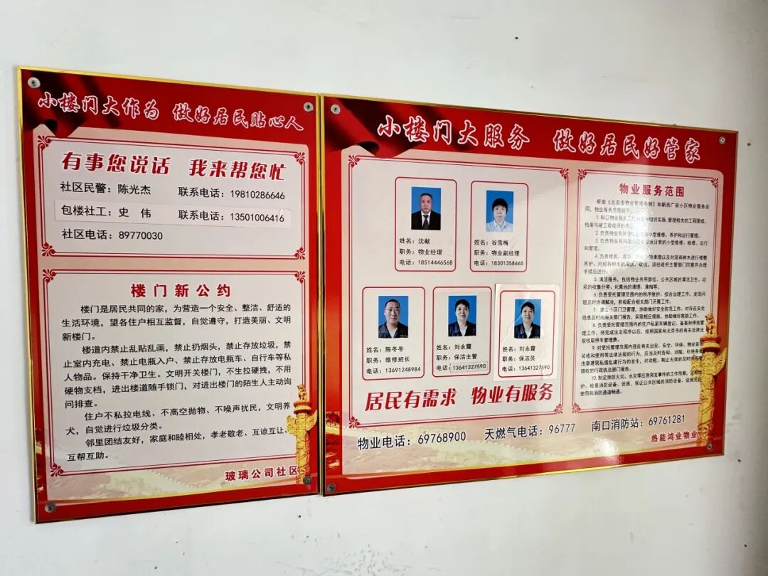 如果说社区是基层治理的“最后一公里”,那么物业管理就是基层治理的“最后一米”。在玻璃公司社区,居委会与物业密切配合、融合发力,让服务渗透到每个楼门、每家每户,努力把群众的需求倾听好、解决好。