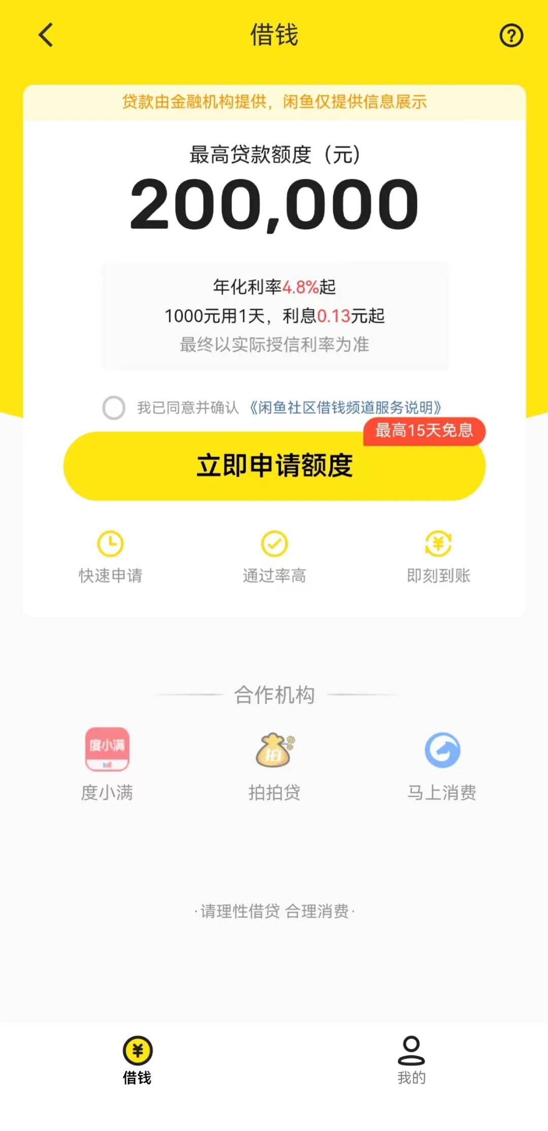 近日,闲鱼APP上线“借钱”频道,为度小满、拍拍贷、马上消费提供贷款中介服务。授信额度最高20万元,年化利率4.8%起。