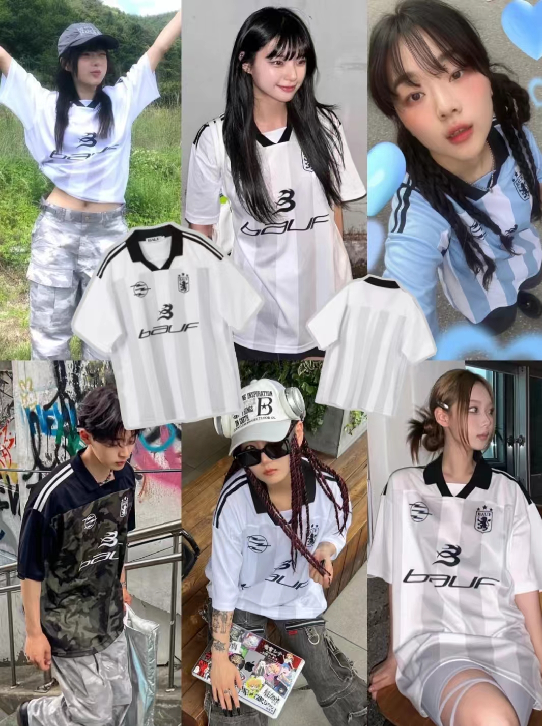从去年火到现在的bauf球衣!不夸张的说韩国博主们都快人手一件了,也是品牌的c位款。球衣小翻领设计同样具备拉长颈线作用,并且更具有时髦特色,上身识别度超高。搭配可以参考ins博主们,蓬蓬短裙少女感、百褶短裙甜酷感、牛仔裤增添随性感,球衣作为无性别穿搭,宽松的设计让时髦的男生女生都能够轻松get!