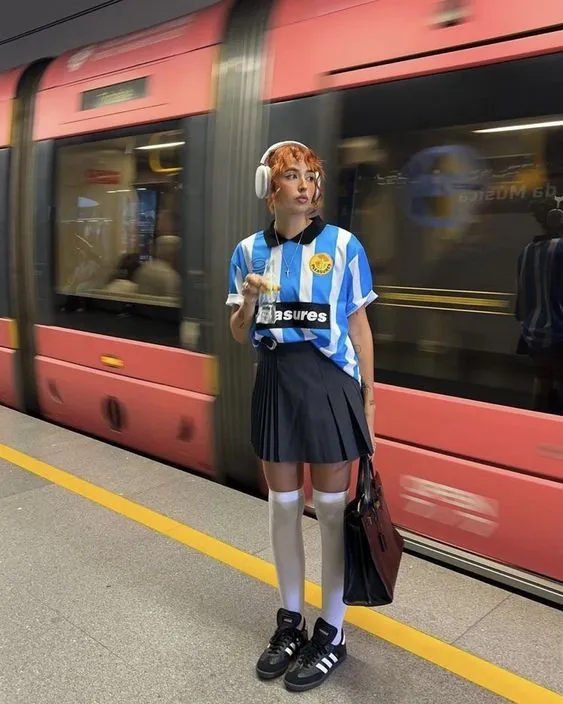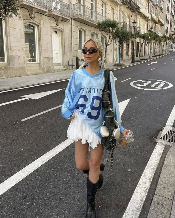 球衣元素也广泛出现在夏日穿搭中,跳脱出了运动的场景,在日常街拍中不少明星达人都将球衣作为潮流元素。由此带动了复古风潮blockcore的“复兴”,一身宽松的球衣玩转街头和赛场。