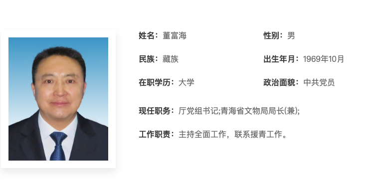 目前,青海省文化和旅游厅已更新了领导介绍。董富海的工作职责是主持全面工作,联系援青工作。