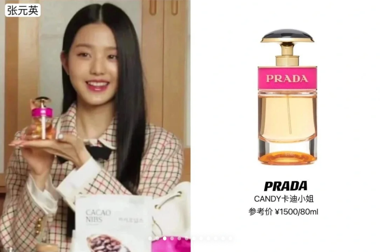 张元英曾经在翻包采访中分享过自己的爱用香水是prada candy,这款香水仿佛为她量身打造,其独特的香气如同刚出炉的香甜糖浆蛋糕,散发着令人难以抗拒的甜蜜诱惑。前调中跳跃的果香与温暖的焦糖气息交织在一起,中调则缓缓释放出柔和的花香,而尾调则留下了绵长的香草与麝香余韵,整体给人一种既浪漫又温馨的感觉。