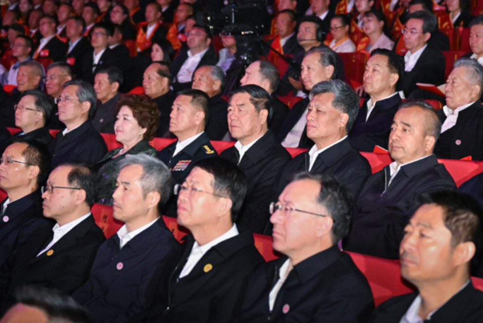 6日晚上,何立峰率领中央代表团成员观看庆祝新疆生产建设兵团成立70周年文艺晚会《光荣使命》。