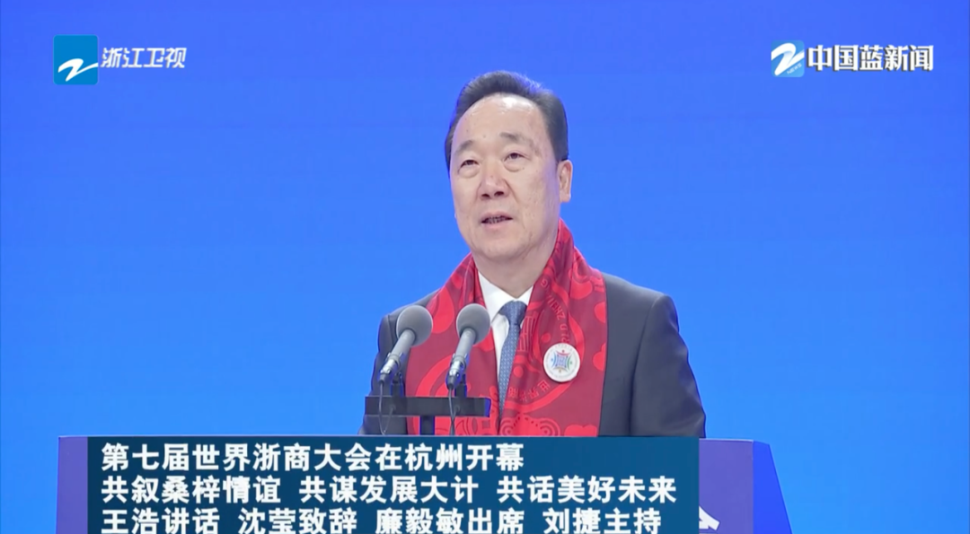 11月28日上午,第七届世界浙商大会开幕,浙江省委书记、省长王浩讲话。