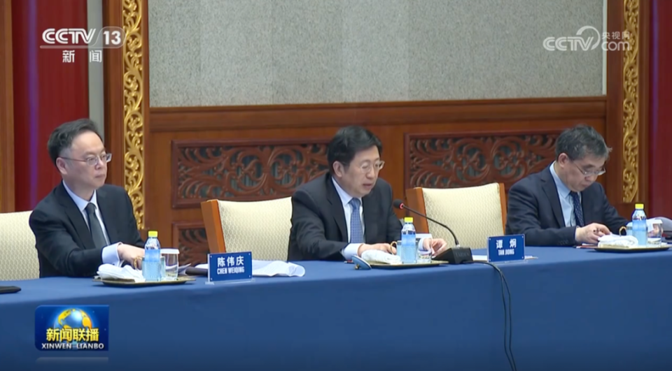 画面显示,国家发展和改革委员会党组成员、副主任赵辰昕,国家开发银行行长谭炯等在现场发言。