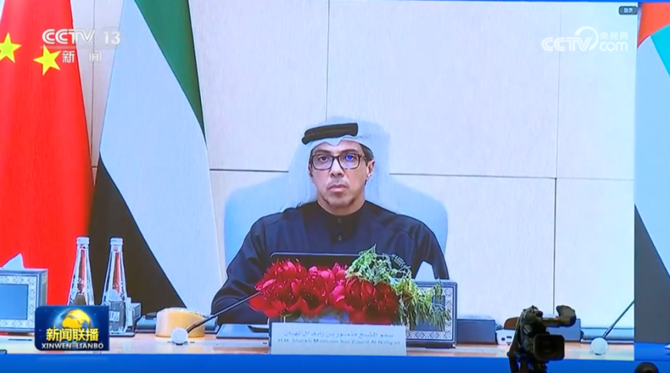 当日,中共中央政治局常委、国务院副总理丁薛祥在北京通过视频方式同阿联酋副总统曼苏尔共同主持了上述会议。