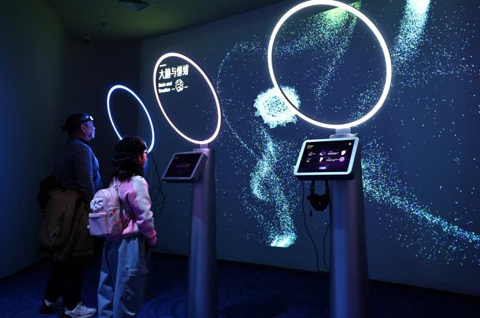 这座科技馆将于农历马年春节期间面向公众试开放。焕新后,馆内设有雨林秘境、源动未来、材料魔方、共生星球、明日行者、神奇的我、飞行探秘等十大常设展区,同时配套有临展厅、科创营、三大影院(巨幕影院、球幕影院、四维影院)以及文创商店、主题餐厅等多元空间,全方位满足公众多样化需求。1月27日,参观者在上海科技馆“源动未来”展区内体验游戏互动科学装置。