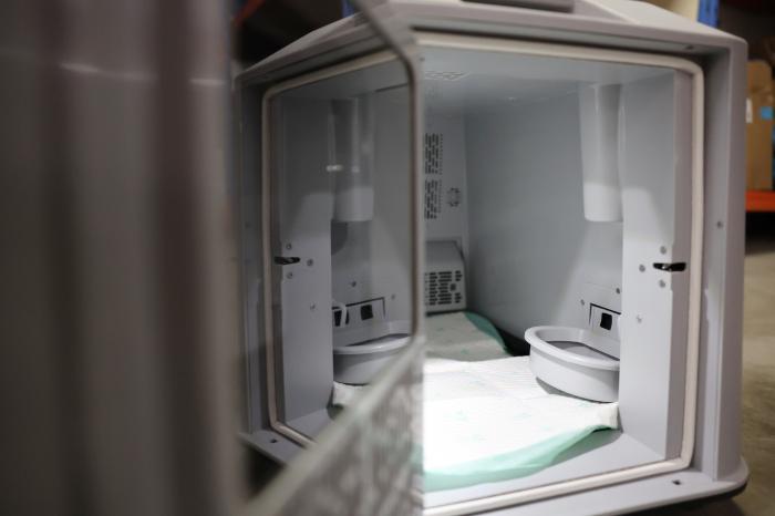 这是高铁宠物运输专用箱内部(2月1日摄)。新华社记者 陈斌 摄