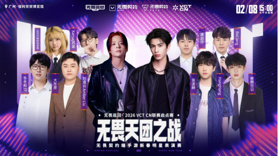 此外值得一提的是,由张凌赫和刘逸云领衔的无畏契约端手游新春表演赛十人阵容也已重磅揭晓,无畏巡回·无畏契约端手游新春表演赛暨2026 VCT CN联赛启点赛,也将在2月8日展开无畏天团的高光之战。