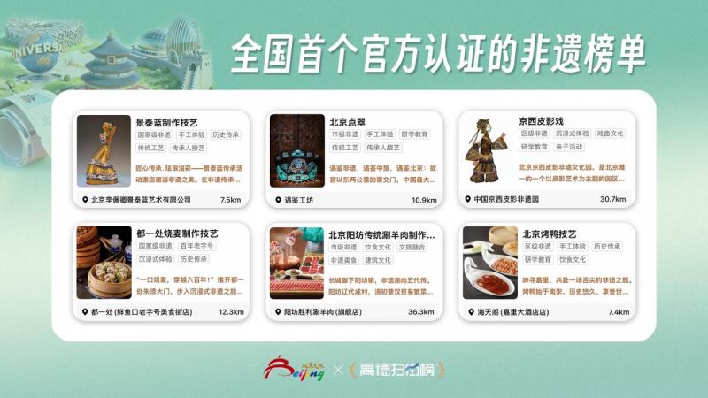 为更好地满足游客深度游、品质游的需求,2026年高德扫街榜北京板块完成体系升级,推出食仙榜、赏花榜、四合院酒店榜、驻京办餐厅榜等特色榜单。目前,扫街榜已覆盖北京2.3万家优质门店,"状元榜"上榜数量达259家。榜单中既有老字号、餐饮老店,也有位于胡同小巷的烟火小店。此次发布的“畅游北京”扫街榜中,全国首个由文旅部门确认的“非遗”榜单备受到关注。据悉,该榜单分为“京彩非遗游”和“非遗美食”两大板块,涵盖国家级、市级、区级非遗项目共120多项。