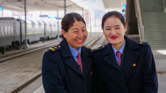 斯朗卓玛(左)和同事在拉萨火车站合影(3月22日摄)。2001年,从格尔木到拉萨的青藏铁路开工建设时,斯朗卓玛正在读高中,她听说西南交通大学要招一批西藏学生,为青藏铁路培养人才,就毫不犹豫填了志愿。青藏铁路通车至今,斯朗卓玛一直在拉萨火车站工作。车站周围在她刚来时是一片农田,现在已发展成为拉萨高新技术开发区。