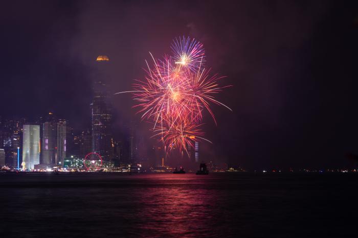 香港举行国庆烟花汇演 庆祝中华人民共和国成立75周年