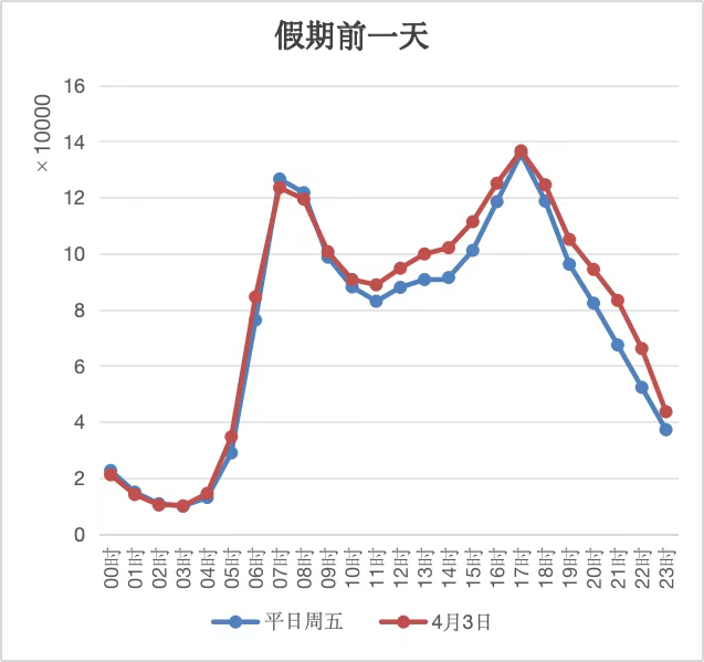 预计从4月3日(假期前一天)开始,自驾出京开始明显增长,出京高峰出现在4月4日(假期第一天),随后进入下降趋势;清明假期开始后,进京方向人流量呈上升趋势,进京高峰出现在4月6日。