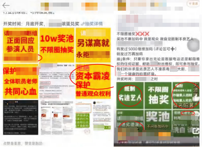 A某通过个人微博账号,多次发布涉及甲的评论内容。在相关微博中,A某使用“甲劣迹艺人”“臭名昭著”等表述,并发布包含“诈骗素人钱财”“挑唆素人吃药”等内容的图片信息。同时,A某围绕甲的特定话题发布“不限圈抽奖”,明确“转发过5000继续加码(评论区可+)”“只要你拿出无论是客服电话还有邮箱维权的任何证据,帮助乙粉丝维权,即可参与抽奖”等,以转发、评论等作为参与条件,且不限定参与范围,任何网络用户均可参与。