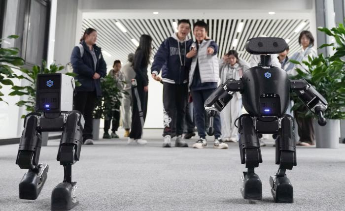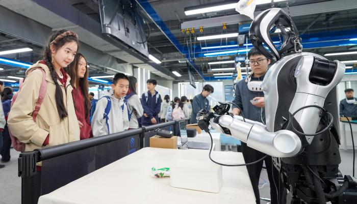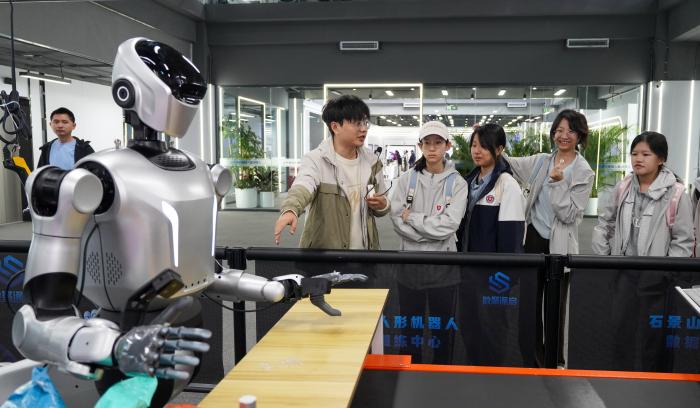 近期,一些北京市中小学生来到石景山人形机器人数据训练中心开展研学活动。