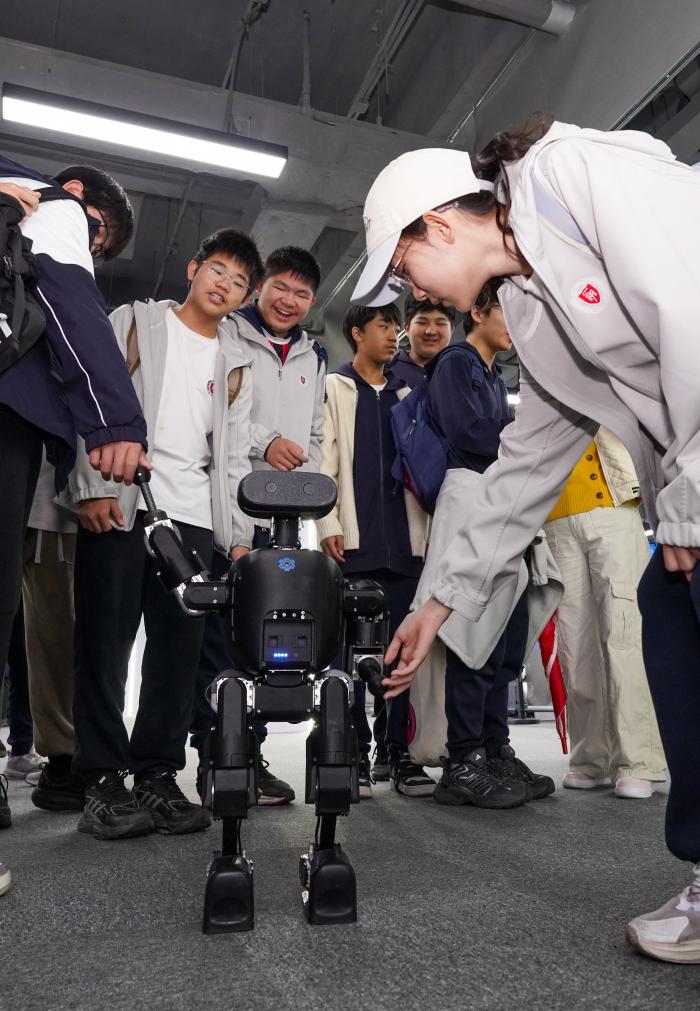 4月9日,学生在石景山人形机器人数据训练中心参观。新华社记者李欣摄