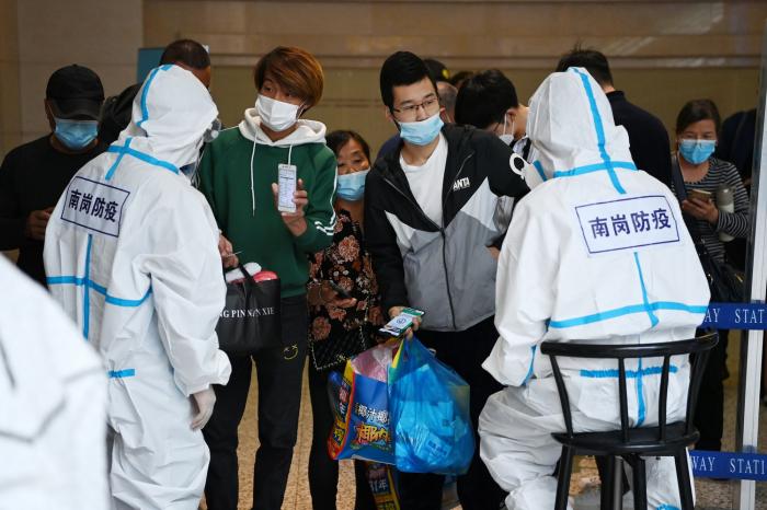 在哈尔滨火车站,准备进站的旅客向工作人员出示核酸检测报告(9月23日摄)。