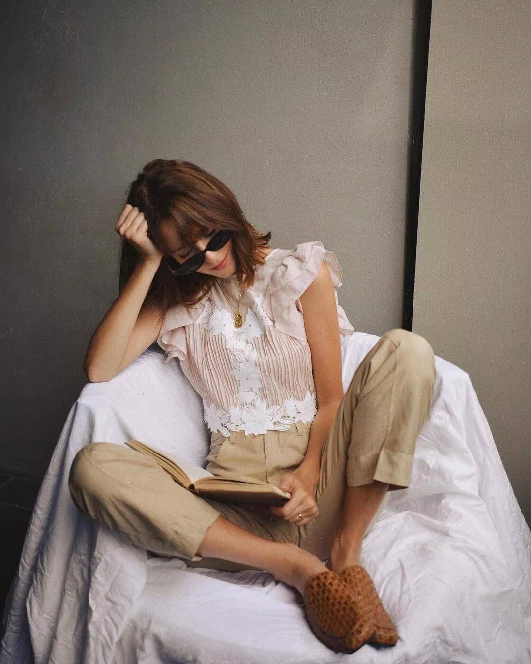 1. 露踝层次学:微喇九分裤+脚踝系带款的呼吸感
