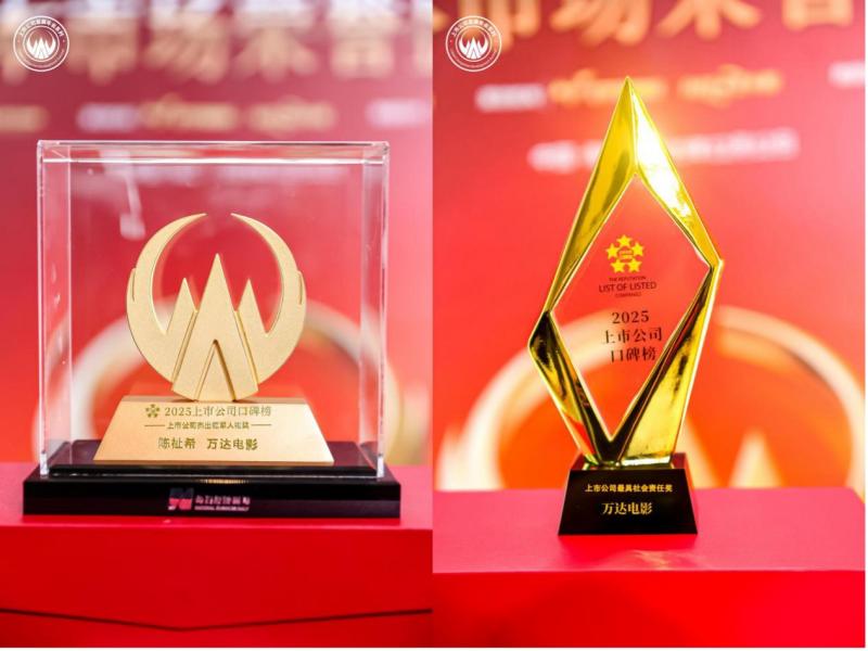 2025年12月11日至13日,“2025第十四届上市公司发展年会暨海南自贸港开放机遇交流大会”在海南海口举行。在2025资本市场荣誉盛典暨上市公司口碑榜颁奖典礼上,万达电影获“上市公司最具社会责任”荣誉,是本年度唯一获奖的文娱产业企业。