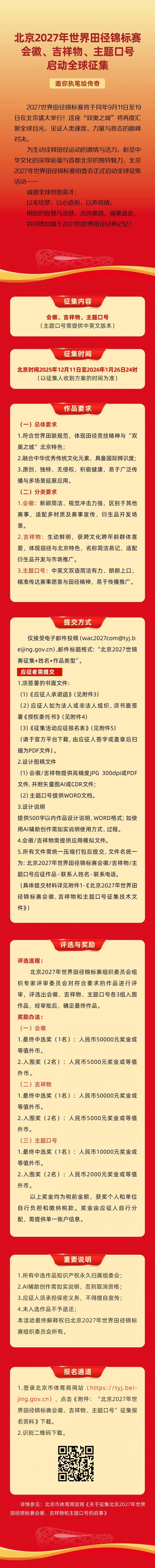 北京2027年世界田径锦标赛开启征集会徽、吉祥物、主题口号