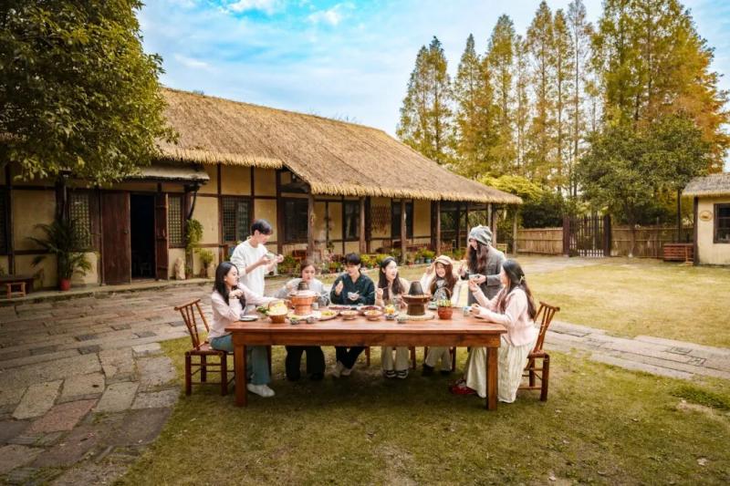 其中蘑菇屋是“社恐”与“社牛”共享的欢乐天地。游客可在这里围炉煮茶,在氤氲茶香中与亲朋好友畅谈人生,感受自由惬意。还可品尝“陈赫同款西红柿炒鸡蛋”“何炅最爱摇滚辣子鸡”等《向往的生活》经典菜式,仿佛置身综艺节目,与明星共享美食乐趣。此外,游客还能用镜头拍摄打卡同款照片,定格田园时光,记录美好瞬间。