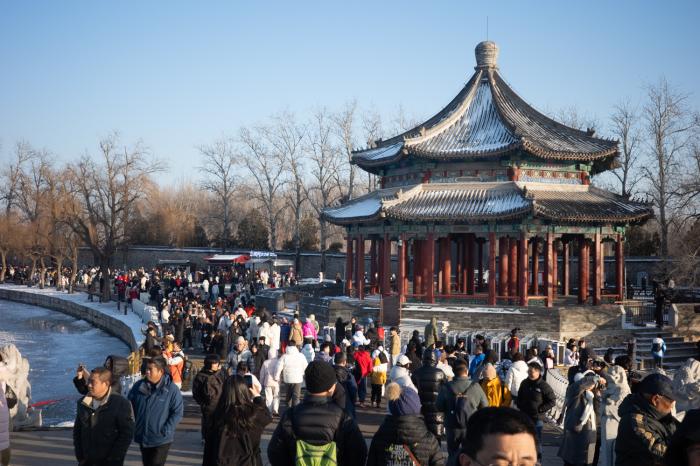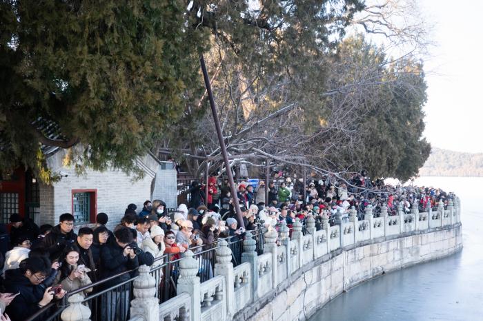 12月14日,正值周末,雪后的颐和园人流如织,迎来大批观赏美景的游人。