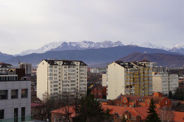 这是12月12日在俄罗斯弗拉季高加索拍摄的城市景观。