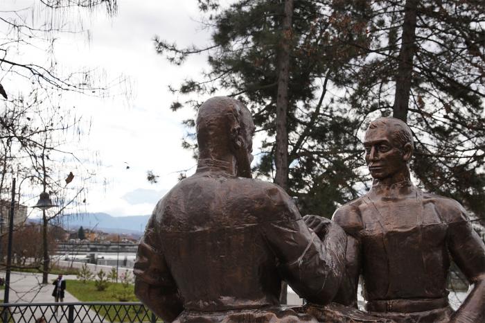 这是12月13日在俄罗斯弗拉季高加索拍摄的街头雕塑。
