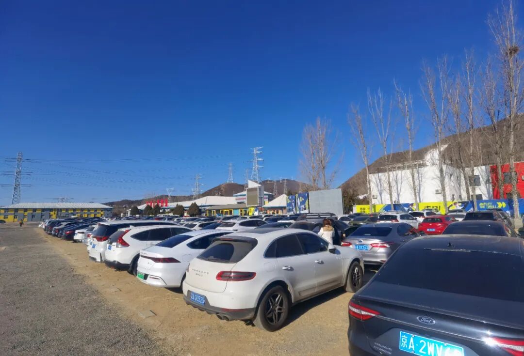 上午10点钟,记者来到军都山滑雪场。能容纳500多辆汽车的停车场已经停满了多一半。